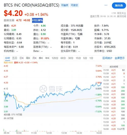 此外,美股以太币储备概念股盘前走强,BTCS涨超12%,BMNR、SBET均涨超7%。
