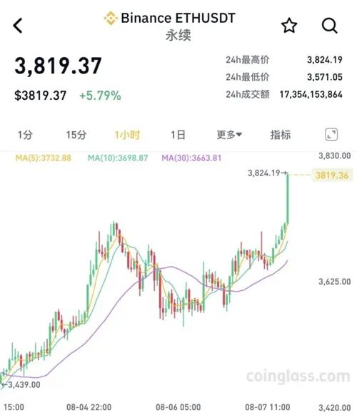 其他加密货币同样走高,Solana、狗狗币、Sui等均涨超5%。