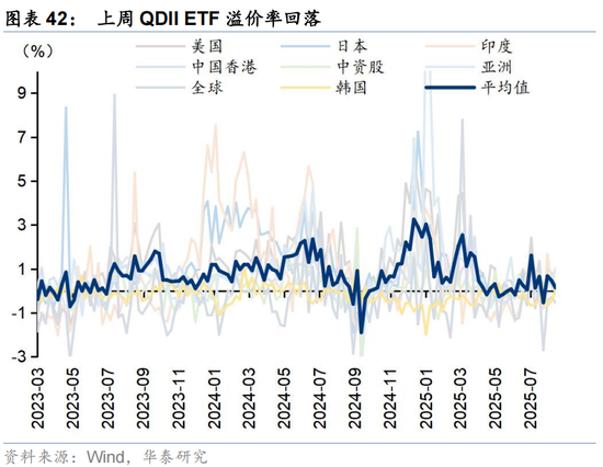 QDII ETF上周净流入52亿元,主要净流入中国香港。从溢价率来看,QDII ETF溢价率环比回落。