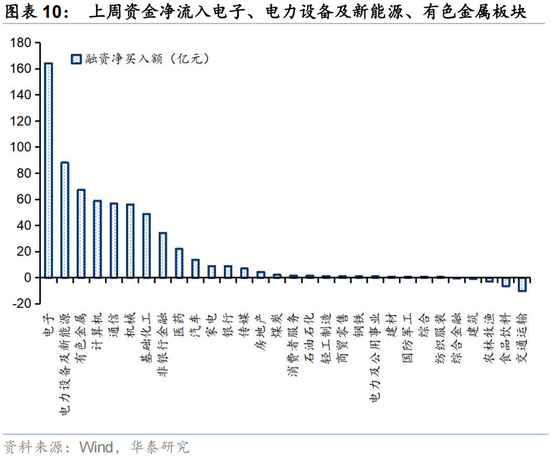 杠杆资金:上周净流入637亿元,交易活跃度上升至11.55%,融资资金净流入电子、电力设备与新能源、有色金属等行业,净流出交通运输行业;