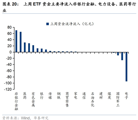 ETF:上周股票型ETF净申购45亿份,净流出37亿元,其中宽基ETF净流出191亿元,行业中非银行金融、电力设备、医药等行业净流入居前。