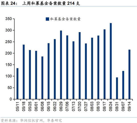 存量公募基金仓位上周有所回落,但仍在80%以上高位。7月以来,公募新发份额中枢持续回升,9月至今已与7月全月相当。中期视角下,公募基金新发仍有催化。政策端, 9月5日,证监会发布《公开募集证券投资基金销售费用管理规定(征求意见稿)》,对于偏股型基金而言:1)降低最大认申购费率,对混合型基金影响较大;2)优化赎回安排,将赎回费全额计入基金财产,降低快速赎回压力,提升基金运行的稳定性和长期性。
