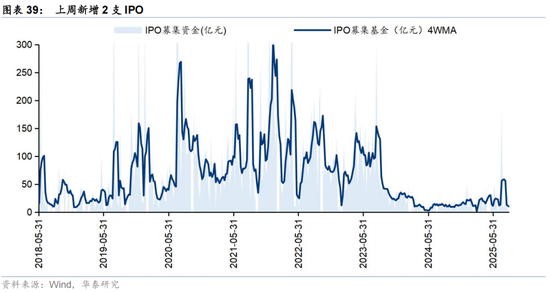 上周一级市场募资金额环比上升。上周新增IPO 2支,募资7.83亿元;上周新增定增1支,募资51.92亿元;上周新增可转债3支,募资20.51亿元。